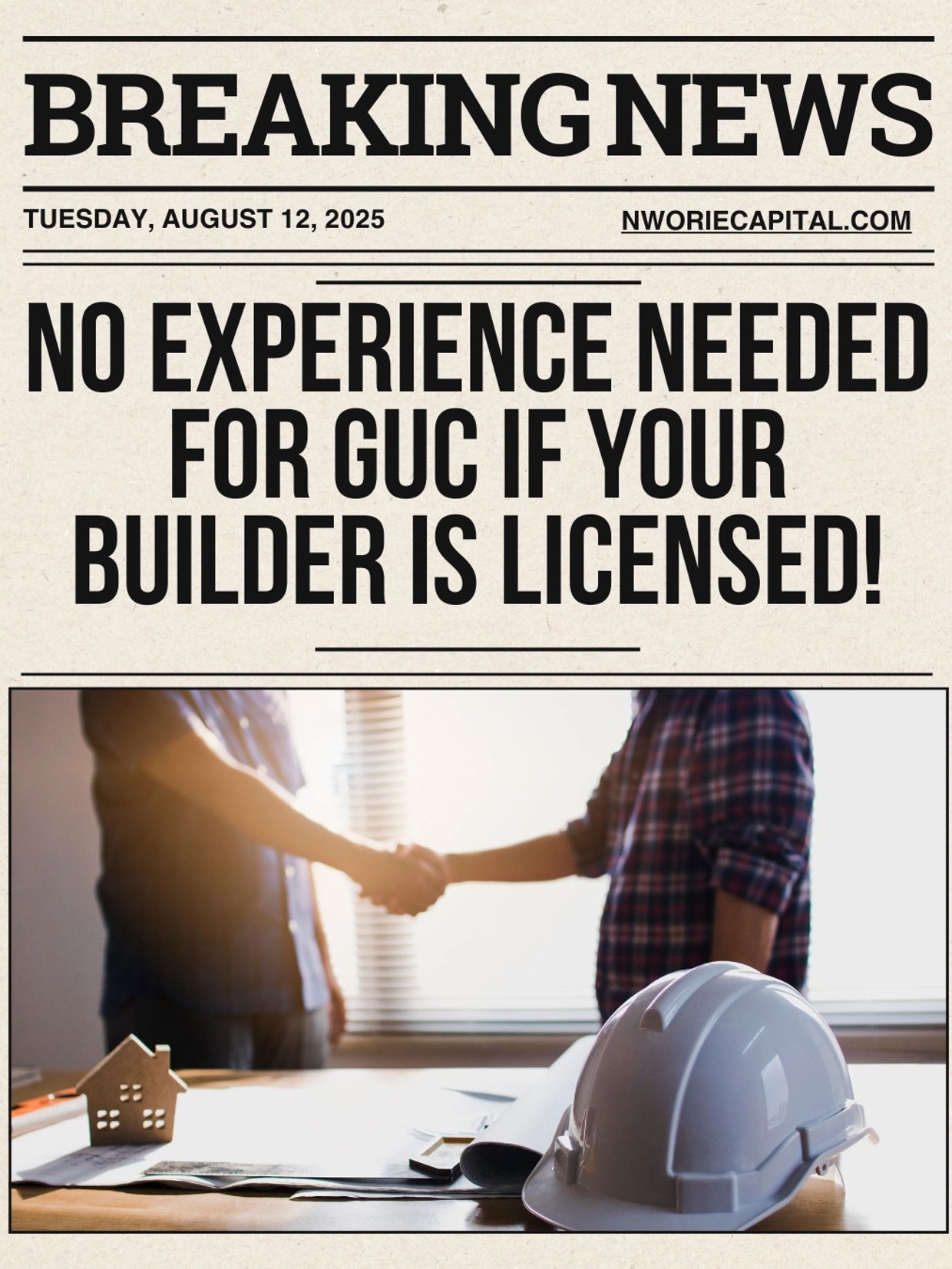even if you do not have any prior Ground Up Construction (GUC) experience.